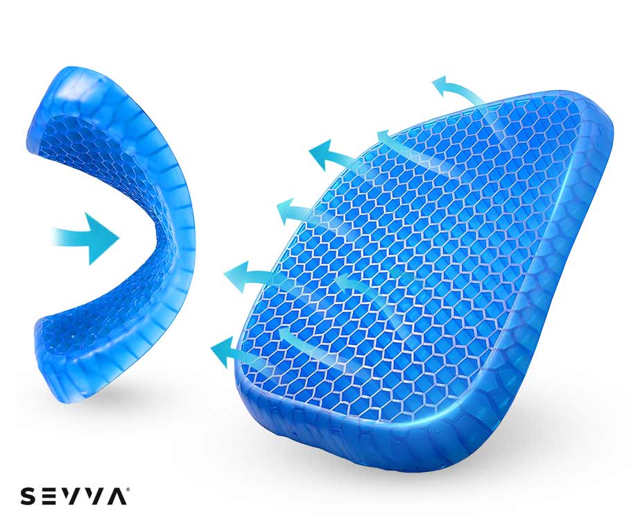 Heb jij last van je rug of billen als je in de auto of op een harde stoel zit? Of merk je dat je steeds meer lichamelijke klachten krijgt? Dan hebben wij dé oplossing voor je! Het SEVVA® Supercomfort Gel zitkussen tovert iedere auto-, rol-, tuin- of schommelstoel om in een heerlijke relax fauteuil. De revolutionaire honinggraat structuur van het SEVVA® gelkussen zorgt voor optimale ondersteuning, precies wat jouw lichaam nodig heeft!