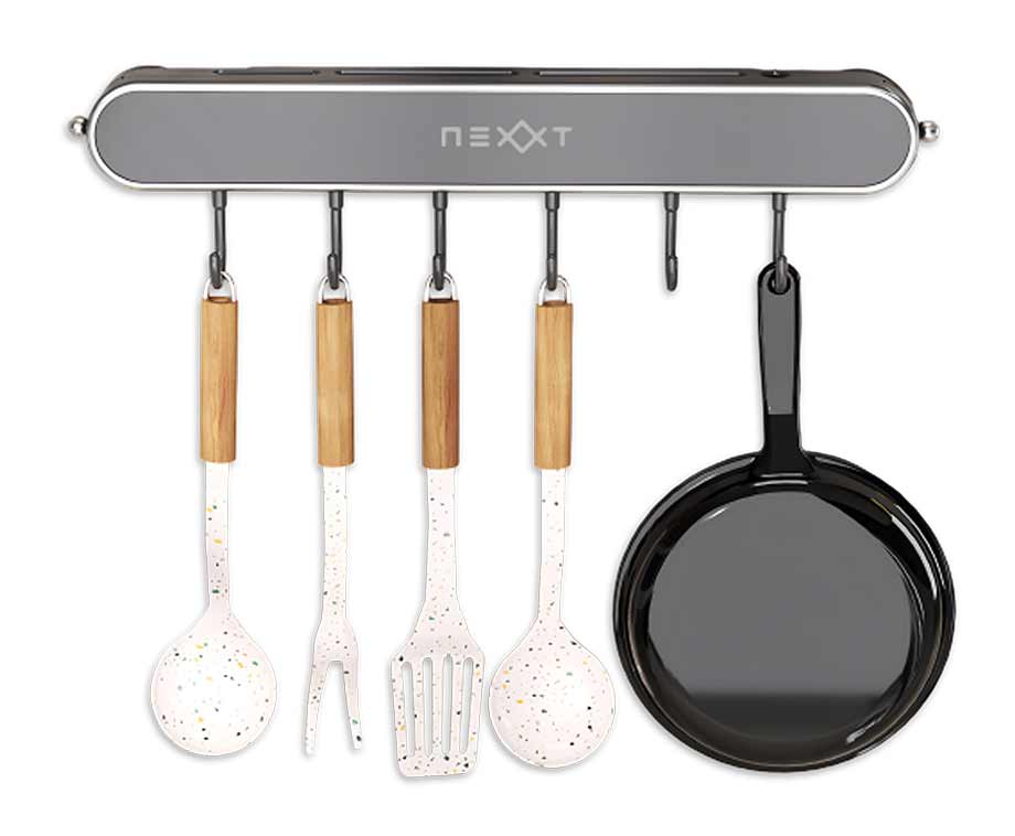 De meegeleverde haken zijn ideaal om spatels, lepels en tangen op te hangen. Alles wat je vaak gebruikt, hangt precies waar je het nodig hebt. Handig, overzichtelijk en lekker snel tijdens het koken.