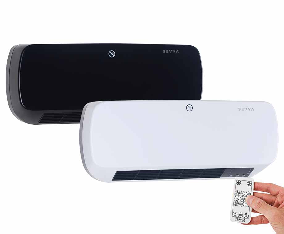 Deze SEVVA-wandkachel en koeler komt helemaal tot zijn recht in jouw huis, op kantoor of in andere ruimtes. De kachel met wandmontage geeft een heerlijke warmte af tijdens koude dagen of blaast koude lucht wanneer je verkoeling nodig hebt. De temperatuur varieert tussen de 10 °C en 49 °C. De elektrische verwarming van SEVVA hang je hoog aan de muur, nabij een stopcontact. De wandmontage werkt ruimtebesparend, omdat de kachel geen ruimte in beslag neemt op je vloer. Je bedient de wandverwarming via het bedieningspaneel op het apparaat of via de meegeleverde afstandsbediening.