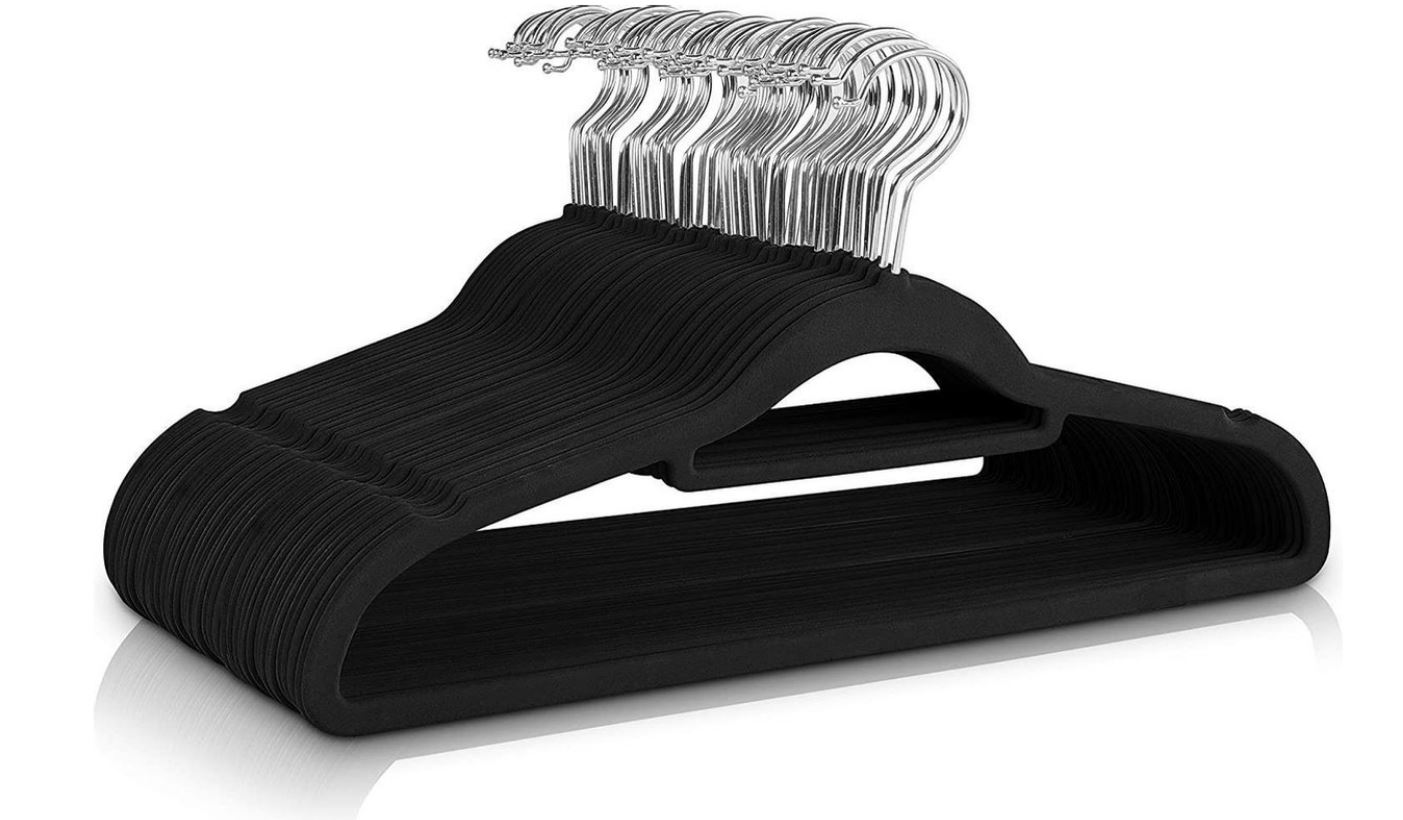 Bekleed met anti-slip suèdeDe zwarte suède afwerking zorgt ervoor dat zelfs de gladste stoffen op hun plaats blijven, waardoor je kleding altijd netjes blijft hangen.