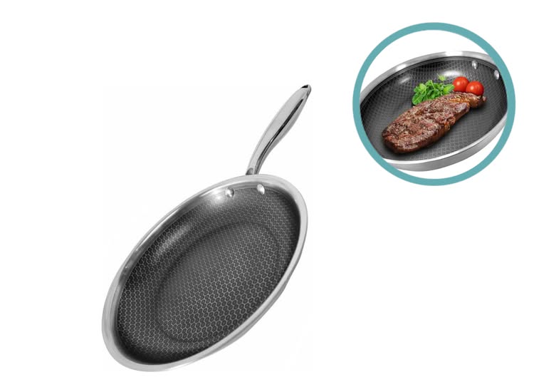 Honingraat anti-aanbaklaag tegen aanbakkenDe innovatieve honingraatstructuur beschermt de anti-aanbaklaag tegen slijtage en direct contact met keukengerei. Hierdoor bak jij vlees, vis en groenten zonder dat ze blijven plakken of aanbranden. De structuur verdeelt warmte en vet gelijkmatig over het oppervlak, wat zorgt voor constante bakresultaten. Ook schoonmaken gaat eenvoudig, omdat etensresten zich nauwelijks hechten. Zelfs bij intensief gebruik blijft de anti-aanbaklaag langdurig effectief en betrouwbaar.