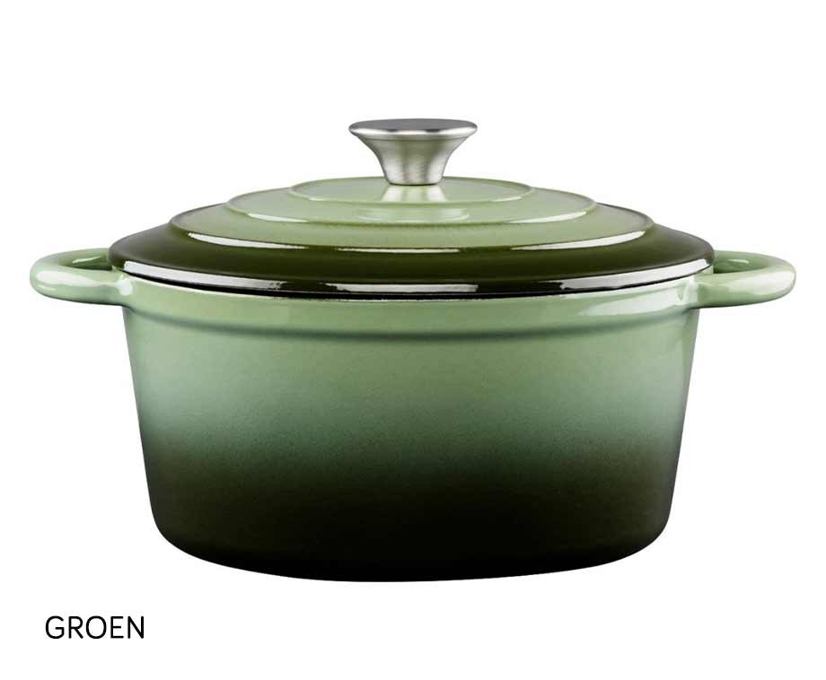 Gietijzer Braadpan Met Deksel In 2 Maten En Kleuren 24 cm Groen