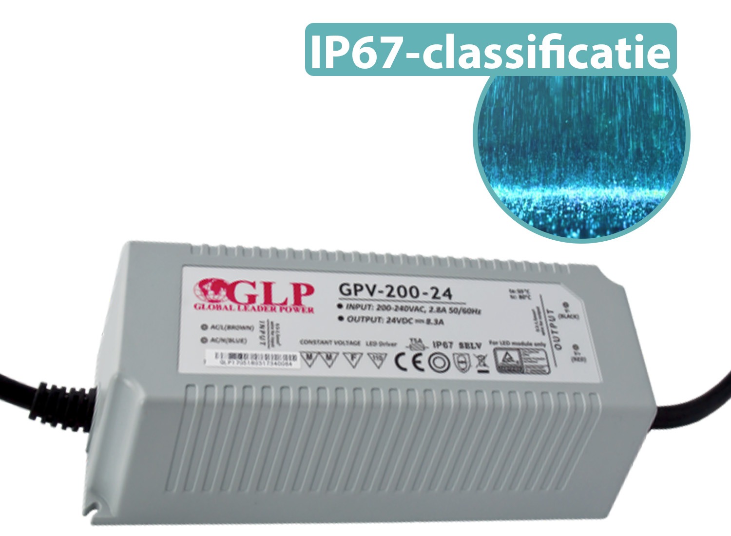 GLP LED voeding 200 watt 24 volt 8,33 Ampère – IP67 waterdicht – GLP GPV-200-24