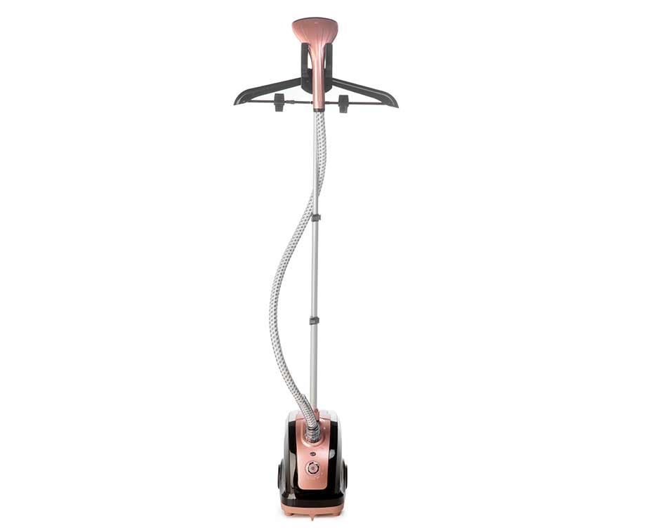 De krachtige stoom van deze staande en draagbare kledingstomer en -reiniger verwijdert kreukels uit kleding, gordijnen, banken, beddengoed en meer.