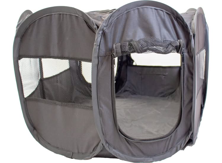 Pop-up systeem voor snel opzetten en inklappenDankzij het innovatieve pop-up systeem zet je de puppyren in enkele seconden op en klap je hem na gebruik eenvoudig weer in. Dit maakt het ideaal voor mobiel gebruik, zowel thuis als onderweg.