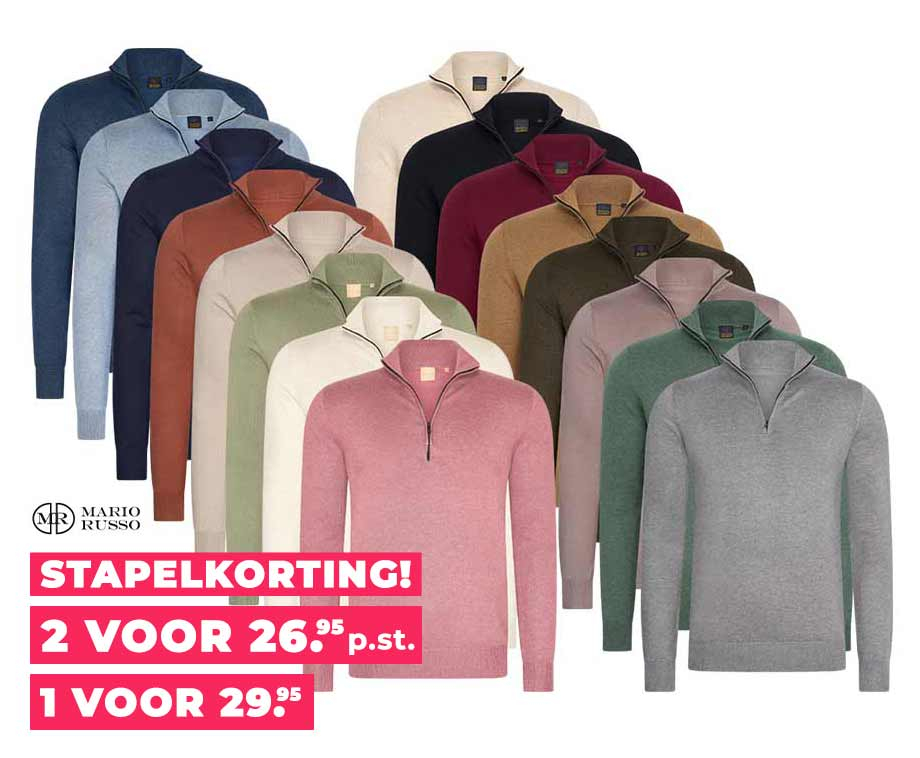 De Mario Russo Zip Sweater is leverbaar in allerlei mooie kleuren en vijf verschillende maten.