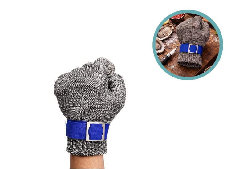 Optimale bescherming bij het openen van oestersHet openen van oesters kan gevaarlijk zijn wanneer een oestermes uitschiet. Deze RVS oesterhandschoen beschermt je hand effectief tegen snij- en steekwonden. De stevige maliënkolderstructuur vormt een sterke barrière, waardoor je met meer vertrouwen en precisie kunt werken. Ideaal voor zowel beginnende oesterliefhebbers als ervaren professionals.