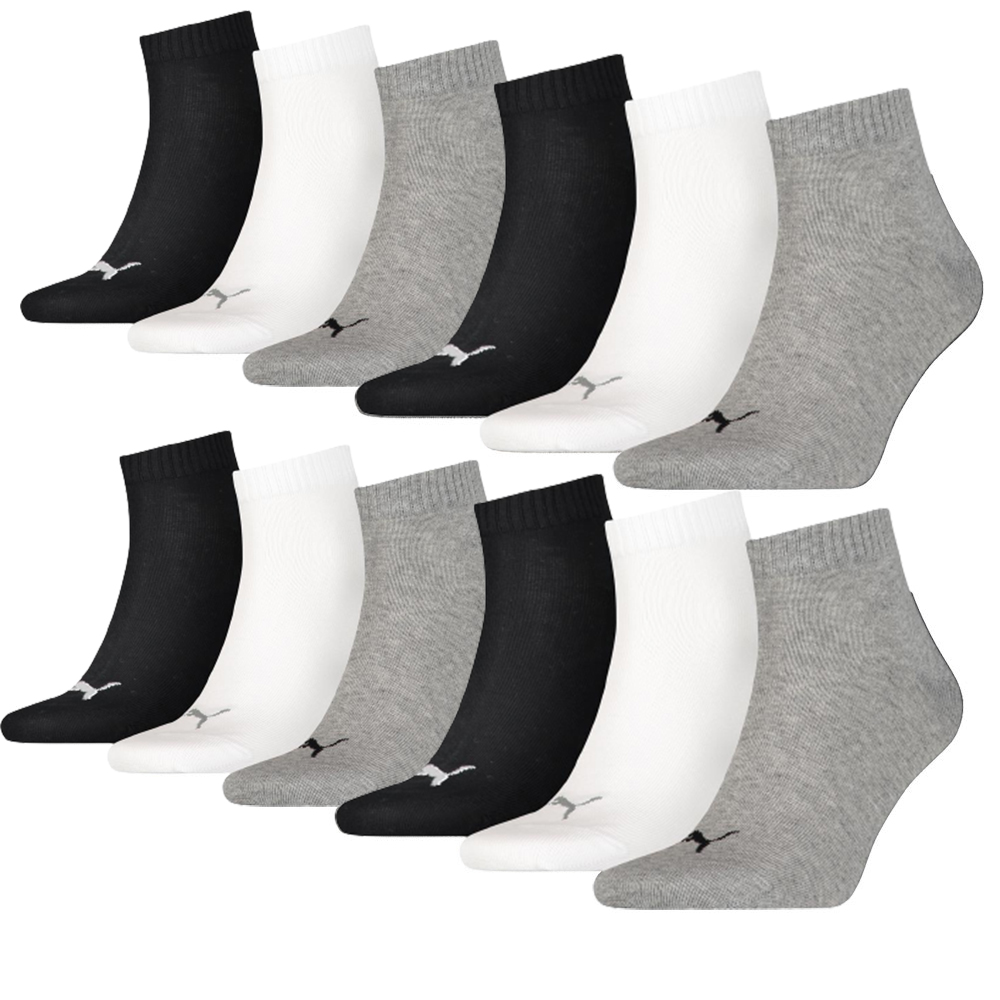 Puma Quarter Sokken Plain 12-pack Zwart / Wit / Grijs-35/38