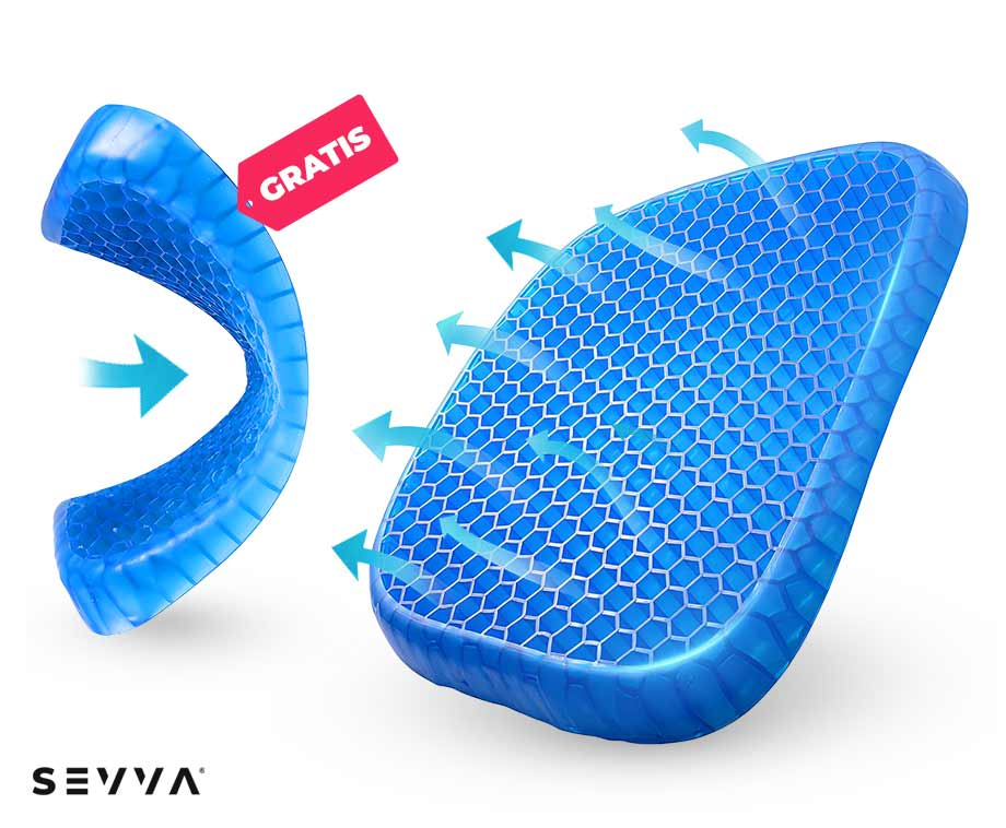 Heb jij last van je rug of billen als je in de auto of op een harde stoel zit? Of merk je dat je steeds meer lichamelijke klachten krijgt? Dan hebben wij dé oplossing voor je! Het SEVVA® Supercomfort Gel zitkussen tovert iedere auto-, rol-, tuin- of schommelstoel om in een heerlijke relax fauteuil. De revolutionaire honinggraat structuur van het SEVVA® gelkussen zorgt voor optimale ondersteuning, precies wat jouw lichaam nodig heeft!
