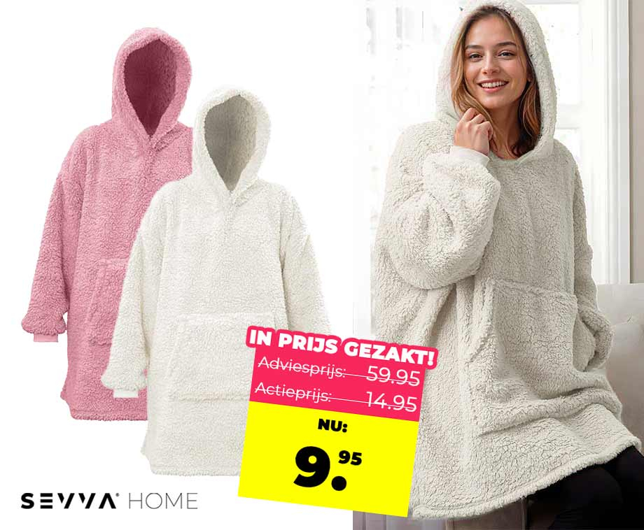 Trek je benen in de zachte donzige stof om jezelf helemaal te bedekken, rol de mouwen op om een snack te eten en beweeg vrij rond terwijl je je warmte overal mee naartoe neemt. De zachte stof voelt aan alsof je wordt geknuffeld door een wolk. Ook handig: wanneer je de SEVVA® Hoodie Blanket draagt kan je de kachel makkelijk lager zetten zodat je een hoop geld bespaart.