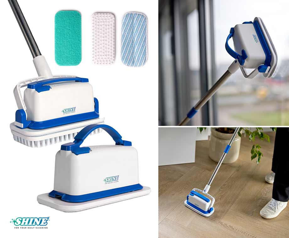Ontdek de ultieme schoonmaakoplossing voor elk huishouden met de Shine 3-in-1 Multiscrubber! Met zijn krachtige 1500 vibraties per minuut poetst, schrobt, polijst en reinigt deze alleskunner automatisch, waardoor schoonmaken lichter en grondiger wordt.