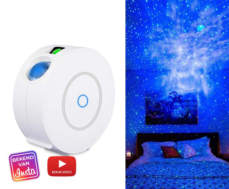 Met deze Slimme Sterrenprojector creëer je oprecht een WAUW-gevoel in een slaapkamer of woonkamer. De laser produceert een ongelooflijke hoeveelheid aan kleuren en patronen waarmee iedere plafond verandert in een stralende sterrenhemel. Of kies voor de ontspanning van bewegende wolken. De sterrenprojector is multifunctioneel; je kunt een kinderslaapkamer transformeren tot een droom voor ieder kind of een feestje in de woonkamer van een zwoele sfeer voorzien!