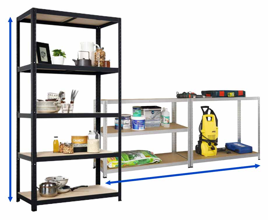 Geen lichtgewichtje dit. Per plank kan er tot 175 kilo op, dus ook zware gereedschapskisten of dozen vol spullen krijgen hier een eigen plekje. En dankzij de kunststof voetdoppen staat hij stabiel zonder krassen te maken.