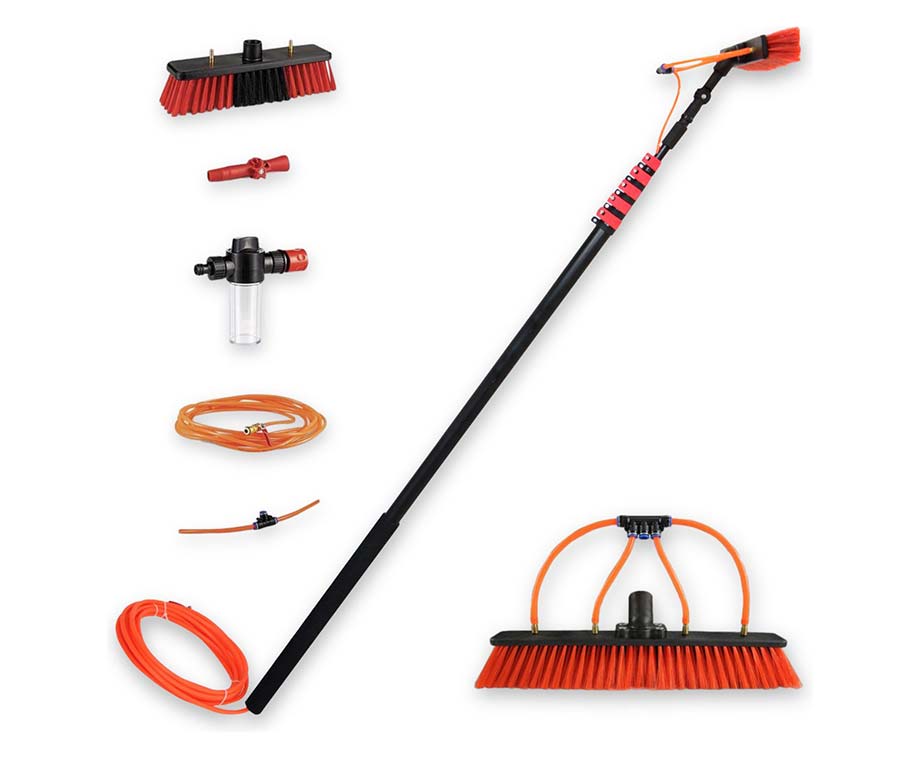 Schoonmaken op hoogte was nog nooit zo makkelijk geweest. Deze uitschuifbare waterborstel is verkrijgbaar in 3 maten: een model die tot maximaal 4,6 meter, 6,5 meter Deluxe, en een model die 7 meter uitschuifbaar is. Heb je groene aanslag op de muren of padden door het weer? Dankzij de robuuste borstelharen is het reinigen van deze oppervlaktes zo gepiept.