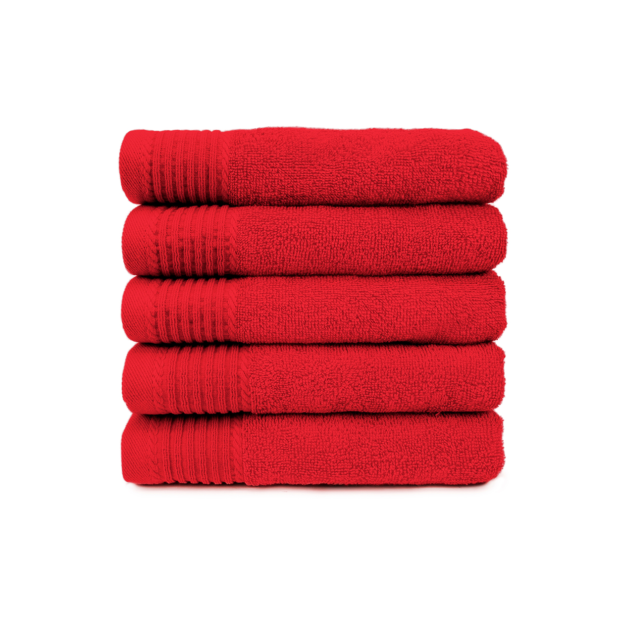Merk: The One Towelling Model: 5 Badhanddoeken Kwaliteit: 450 gr/m2 Materiaal: 100% katoen Afmeting: 70 x 140 cm Kleur: Rood