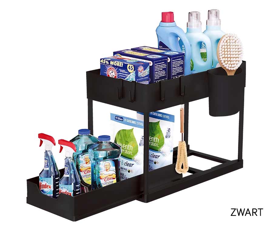 Stapels schoonmaakmiddelen, rondslingerende sponsjes en die ene verdwaalde vaatwastablet-dat is verleden tijd! Met deze gootsteen- en ladeorganizer is alles binnen handbereik én netjes opgeruimd.