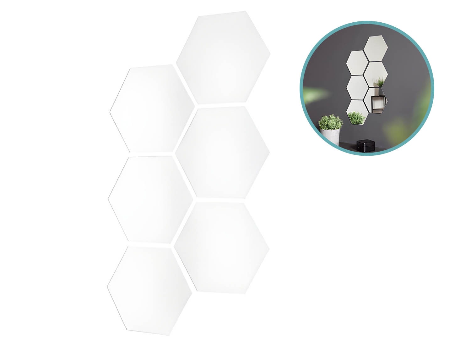 Zeshoekige spiegel wandstickers 6-delig 18 x 21 x 0,25 cm