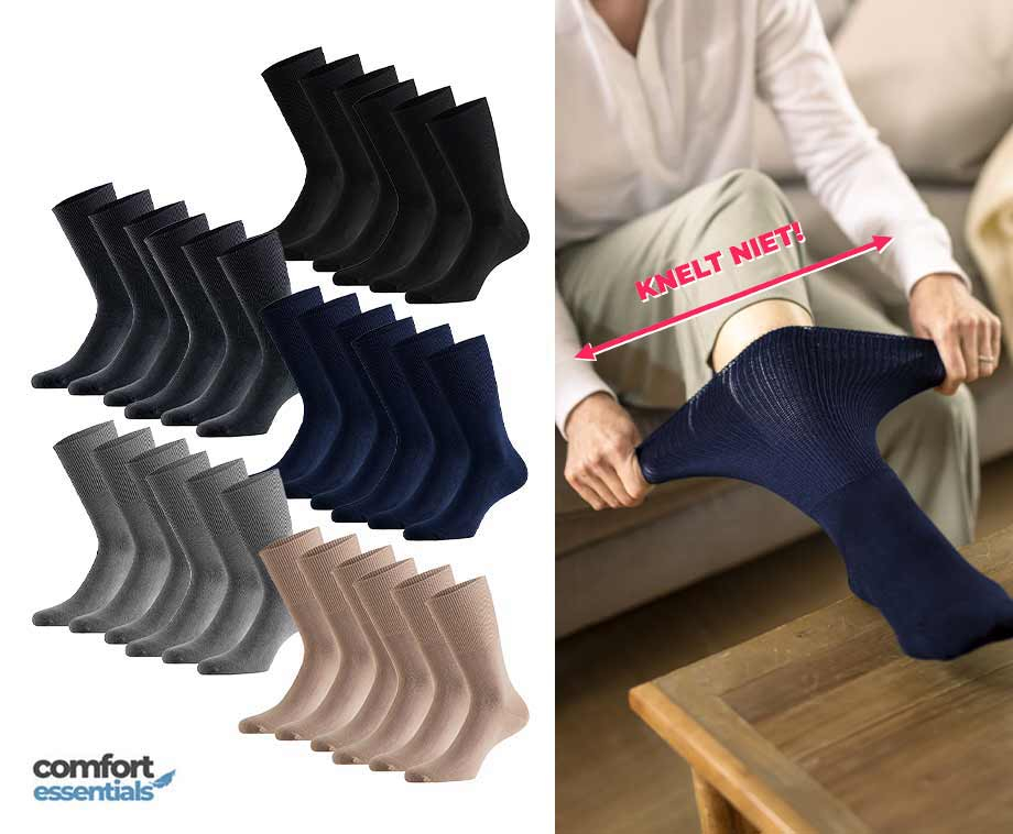 Voor mensen met diabetes, een gevoelige huid of problemen met de bloedsomloop blijft het een uitdaging om de juiste sokken te vinden. Niemand wil last hebben van knellende elastieken of afdrukken van verkeerd passende sokken! Daarom zijn deze 6 paar Comfort Essentials antipress sokken speciaal voor jullie ontwikkeld.