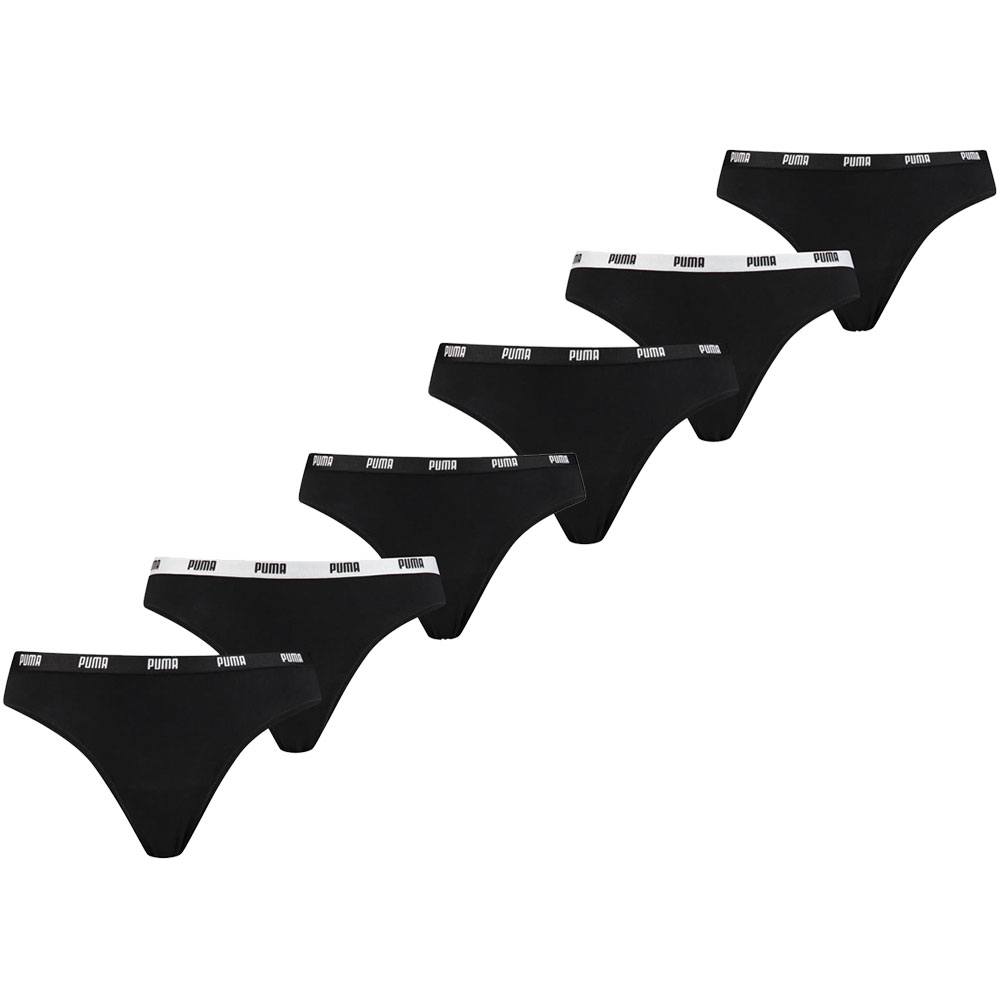 Puma String Dames Zwart 6-Pack Merk: Puma Inhoud: 6 Mini String Kleur: Zwart Materiaal: 57% katoen, 38% modal 5 % elastan